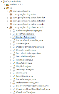 4. com.google.zxing.client.android找到CaptureActivity類別,這是主程式。