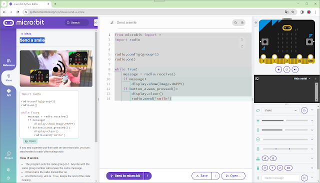 範例十一、Send a smile,網址:https://python.microbit.org/v/3/ideas/send-a-smile